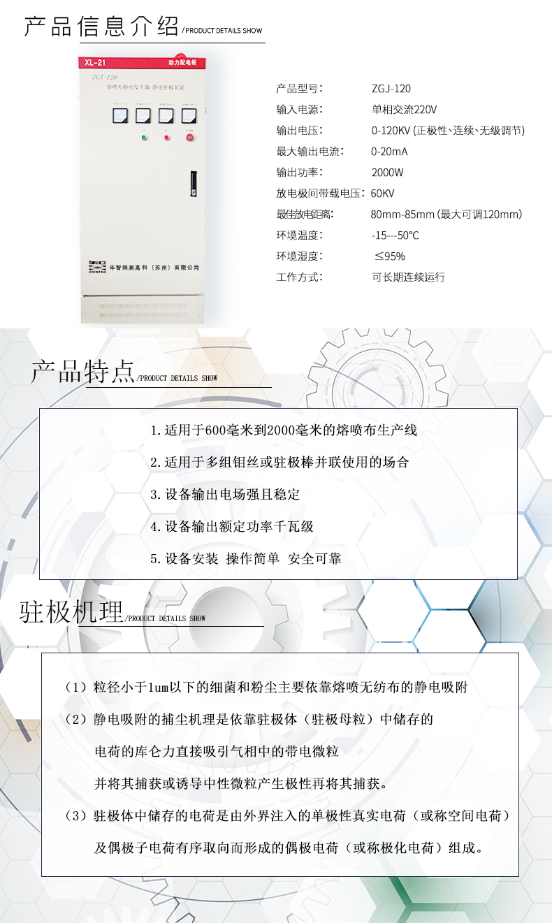 簡要描述:ZGJ-120熔噴布靜電發(fā)生器,靜電駐極設(shè)裝置是一種靜電應(yīng)用設(shè)備,作用是一種材料帶電,吸附到另一種材料表面,用于定位、固定、吸附等作用,主要應(yīng)用于印刷、口罩機無紡布,熔噴布附加靜電,塑料加工的輸送定位、吸附壓邊工藝以及地板、玻璃、不銹鋼塑料板的自動貼膜工藝,工作在無紡布、噴漆、植絨、分選和生物工程領(lǐng)域。