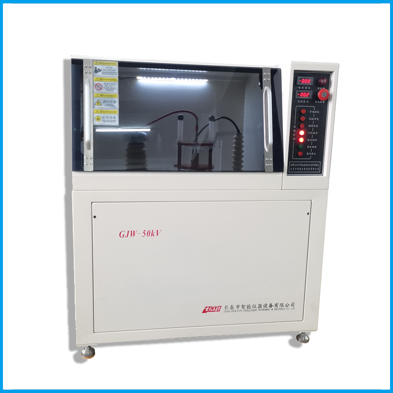 GJW-50KV電壓擊穿試驗儀主要由:升壓系統(tǒng)(高壓變壓器)、測量系統(tǒng)、A/D轉(zhuǎn)換器、放電系統(tǒng)、電極、油箱、電極定位架、計算機數(shù)據(jù)處理系統(tǒng)、軟件等組成