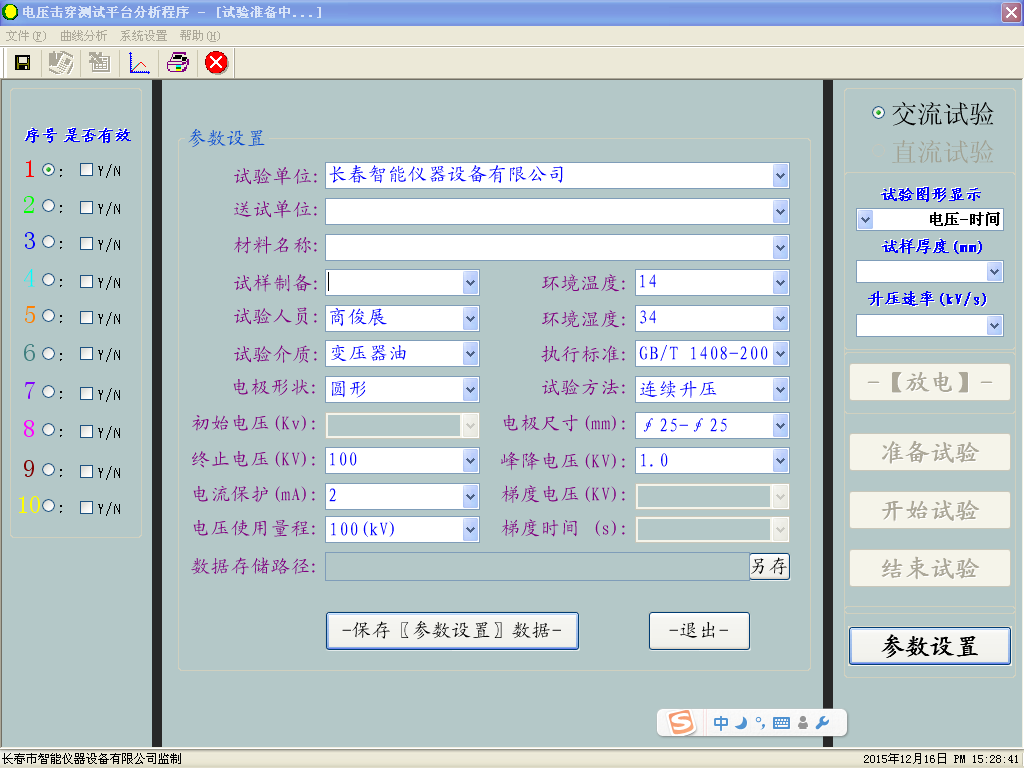 試驗參數(shù)設(shè)置界面